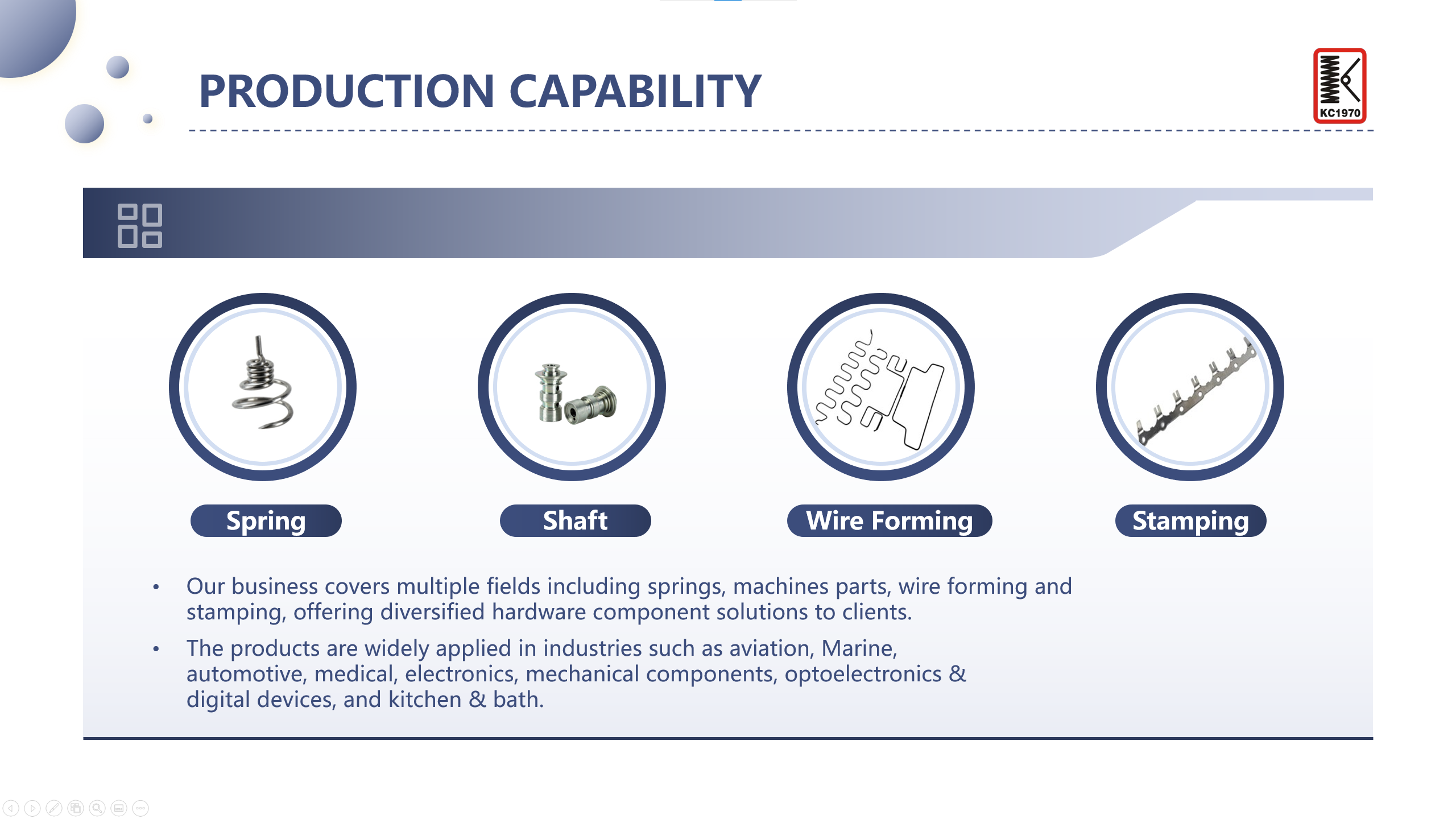 After 2000, with the development of electronic technology in the mainland, China's household appliances products also flourished. Rainbow has also entered the supply chain system of electrical products, providing many brands of electrical appliance manufacturers with hardware spring products manufacturing services. At that time, Galanz, Midea, TCL, LG, Panasonic and other companies were the main customers of Rainbow. Due to the customer's product needs, Rainbow only provides spring products and can no longer satisfy customers, so Xian Sheng has carried out technological expansion and simultaneously stepped into the stamping processing industry. After several years of technical hard work and enterprising, Rainbow has also established a stamping department for customers. Provide production services from mold design to stamping products.
